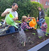 Ältere Menschen und Familien mit kleinen Kindern helfen sich gegenseitig - individuell und persönlich.